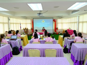 นางวิชุดา โชคภูเขียว ผู้อำนวยการศูนย์การศึกษาพิเศษ ประจำจังหวัดนนทบุรี นิเทศ ให้คำแนะนำบุคลากรใหม่ ตำแหน่ง พี่เลี้ยงเด็กพิการและคนงาน ในการปฏิบัติงานเพื่อให้การทำงานเป็นไปอย่างมีประสิทธิภาพ