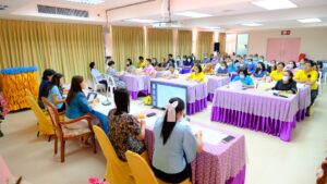 ศูนย์การศึกษาพิเศษ ประจำจังหวัดนนทบุรี จัดประชุมประจำเดือนกรกฎา คม และเดือนสิงหาคม ครั้งที่ 4 / 2566 โดยมี ดร.วิชุดา โชคภูเขียว ผู้อำนวยการ เป็นประธานในการประชุมดังกล่าว เพื่อชี้แจงนโยบายและมอบหมายงานแก่คณะครูและบุคลากรทางการศึกษา โดยหัวหน้ากลุ่มบริหารงาน ทั้ง 4 กลุ่มงาน ได้รายงานผลการดำเนินงานของกรกฎาคม และเดือนสิงหาคมที่ผ่านมา พร้อมทั้งการรายงานการเข้ารับการอบรมของคณะครู และร่วมอวยพรในวันคล้ายวันเกิดของบุคลากร ณ ห้องประชุมชั้น 3 ศูนย์การศึกษาพิเศษ ประจำจังหวัดนนทบุรี 11 ส.ค. 2566adminข่าวสาร ศูนย์การศึกษาพิเศษ ประจำจังหวัดนนทบุรี จัดประชุมประจำเดือนกรกฎา คม และเดือนสิงหาคม ครั้งที่ 4 / 2566 โดยมี ดร.วิชุดา โชคภูเขียว ผู้อำนวยการ เป็นประธานในการประชุมดังกล่าว เพื่อชี้แจงนโยบายและมอบหมายงานแก่คณะครูและบุคลากรทางการศึกษา โดยหัวหน้ากลุ่มบริหารงาน ทั้ง 4 กลุ่มงาน ได้รายงานผลการดำเนินงานของกรกฎาคม และเดือนสิงหาคมที่ผ่านมา พร้อมทั้งการรายงานการเข้ารับการอบรมของคณะครู และร่วมอวยพรในวันคล้ายวันเกิดของบุคลากร ณ ห้องประชุมชั้น 3 ศูนย์การศึกษาพิเศษ ประจำจังหวัดนนทบุรี
