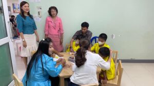 ดร.วิชุดา โชคภูเขียว ผู้อำนวยการศูนย์การศึกษาพิเศษ ประจำจังหวัดนนทบุรี ให้การต้อนรับคณะนิเทศการปฎิบัติการสอน การฝึกอบรมด้านการสอนคนพิการ ตามหลักสูตรการฝึกอบรมครูด้านการสอนคนพิการ พุทธศักราช 2561 (พ.ค.ก.) รุ่นที่ 3 ประจำปี 2566 ครั้งที่ 1 11 ส.ค. 256613 ส.ค. 2023adminข่าวสาร ดร.วิชุดา โชคภูเขียว ผู้อำนวยการศูนย์การศึกษาพิเศษ ประจำจังหวัดนนทบุรี ให้การต้อนรับคณะนิเทศการปฎิบัติการสอน การฝึกอบรมด้านการสอนคนพิการ ตามหลักสูตรการฝึกอบรมครูด้านการสอนคนพิการ พุทธศักราช 2561 (พ.ค.ก.) รุ่นที่ 3 ประจำปี 2566 ครั้งที่ 1 ประกอบด้วย 1. นางสรวีย์ ดอกกุหลาบ ผู้อำนวยการโรงเรียนสุพรรณบุรีปัญญานุกูล จังหวัดสุพรรณบุรี ประธานกรรมการ 2. นางสุธามาศน์ สุขเสพย์ รองผู้อำนวยการโรงเรียนสุพรรณบุรีปัญญานุกูล จังหวัดสุพรรณบุรี กรรมการ 3. นางสาวหทัยทิพย์ หนูมงกุฎ ครูชำนาญการพิเศษโรงเรียนสุพรรณบุรีปัญญานุกูล จังหวัดสุพรรณบุรี กรรมการ พร้อมด้วยผู้ติดตาม โดยคณะครูจากศูนย์การศึกษาพิเศษ ประจำจังหวัดนนทบุรี ที่รับการนิเทศการปฎิบัติการสอน ประกอบด้วย 1. นางสาวชฬินทร์พิทร ลุนบง 2. นางสาวจาตุพร ดวงแก้ว 3. นางพิมพ์ใจ ชาญวิรัตน์ 4. นางสาวอาภาภรณ์ วรคุณ 5. นางสาวฟาอีซะห์ สีดง 6. นายวีรเชษฐ์ อารีชินรักษ์ 7. นางสาวประภาพร พระคุณเลิศ โรงเรียนโสตศึกษาจังหวัดนนทบุรี ที่รับการนิเทศการปฎิบัติการสอน ประกอบด้วย 1. ว่าที่ร้อยตรีมารวัน มือแนง 2. นายฟารุก เจ๊ะยูโซ๊ะ 3. นายมุตากิน ยะมา