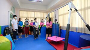 ศูนย์การศึกษาพิเศษ ประจำจังหวัดนนทบุรี นำโดย ดร.วิชุดา โชคภูเขียว ผู้อำนวยการ พร้อมด้วยนางสาวพรรณธิภา จันประตูมอญ และคณะครู ให้การต้อนรับคณะศึกษาดูงาน จากศูนย์การแพทย์ปัญญานันทภิกขุ ชลประทาน มหาวิทยาลัยศรีนครินทรวิโรฒ ที่เข้าศึกษาดูงานเพื่อแลกเปลี่ยนเรียนรู้การจัดการเรียนการสอน สำหรับนักเรียนที่มีความต้องการจำเป็นพิเศษ รูปแบบการบริหารจัดการภายในศูนย์ฯ การดูแลจัดการสถานที่ ให้เอื้ออำนวยความสะดวกแก่ผู้เรียน ที่ผ่านการตรวจประเมินสถานศึกษาตามหลักเกณฑ์มาตรฐานความปลอดภัย จากกรมสวัสดิการและคุ้มครองแรงงาน