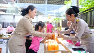 ศูนย์การศึกษาพิเศษ ประจำจังหวัดนนทบุรี นำโดยดร.วิชุดา โชคภูเขียว ผู้อำนวยการ นางสาวพรรณธิภา จันประตูมอญ และนางสาววารี นาครัตน์ รองผู้อำนวยการ พร้อมทั้งคณะครูและบุคลากร ร่วมจัดกิจกรรมตลาดนัดคุณหนู (ครั้งที่ 4) ตามโครงการพัฒนาแหล่งเรียนรู้และสภาพแวดล้อม ที่เอื้อต่อการจัดการเรียนรู้สำหรับผู้เรียนที่มีความต้องการจำเป็นพิเศษ ประจำปีการศึกษา 2566 ณ ลานกิจกรรม ศูนย์การศึกษาพิเศษ ประจำจังหวัดนนทบุรี 26 มี.ค. 2567adminข่าวสาร ศูนย์การศึกษาพิเศษ ประจำจังหวัดนนทบุรี นำโดยดร.วิชุดา โชคภูเขียว ผู้อำนวยการ นางสาวพรรณธิภา จันประตูมอญ และนางสาววารี นาครัตน์ รองผู้อำนวยการ พร้อมทั้งคณะครูและบุคลากร ร่วมจัดกิจกรรมตลาดนัดคุณหนู (ครั้งที่ 4) ตามโครงการพัฒนาแหล่งเรียนรู้และสภาพแวดล้อม ที่เอื้อต่อการจัดการเรียนรู้สำหรับผู้เรียนที่มีความต้องการจำเป็นพิเศษ ประจำปีการศึกษา 2566 ณ ลานกิจกรรม ศูนย์การศึกษาพิเศษ ประจำจังหวัดนนทบุรี