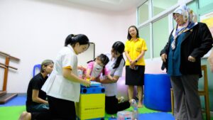 ดร.เบญจลักษณ์ น้ำฟ้า กรรมการและผู้จัดการมูลนิธิรางวัลสมเด็จเจ้าฟ้ามหาจักรี ดร.ธนนท์ วีรธนนท์ ผู้อำนวยการกลุ่มบริหารทั่วไป สำนักบริหารงานการศึกษาพิเศษ ตัวแทนจากสำนักบริหารงานการศึกษาพิเศษ ดร.วิชุดา โชคภูเขียว ผู้อำนวยการศูนย์การศึกษาพิเศษ ประจำจังหวัดนนทบุรี รศ.ดร.สุวิมล อุดมพิริยะศักย์ ผู้ทรงคุณวุฒิ คณะกรรมการสถานศึกษา พร้อมด้วยนางสาววารี นาครัตน์ รองผู้อำนวยการ ดร.มาเรียม ซอหมัด และคณะครูร่วมต้อนรับคณะศึกษาดูงานจากประเทศบรูไนดารูซาลาม ประกอบด้วย 1 Mrs.Hajah Ratnawati binti Haji Mohammad 2 Mrs.Hajah Suryani binti Haji Mahmud 3 Mr. Hj Abdul Hamid bin Hj Matussin, Senior technical assistant, istana maintenance dept work in sultan palace. ที่เข้าศึกษาดูงาน เพื่อแลกเปลี่ยนเรียนรู้เรื่องการศึกษาพิเศษในประเทศไทยและประเทศบรูไนดารูซาลาม 20 ส.ค. 2567adminข่าวสาร ดร.เบญจลักษณ์ น้ำฟ้า กรรมการและผู้จัดการมูลนิธิรางวัลสมเด็จเจ้าฟ้ามหาจักรี ดร.ธนนท์ วีรธนนท์ ผู้อำนวยการกลุ่มบริหารทั่วไป สำนักบริหารงานการศึกษาพิเศษ ตัวแทนจากสำนักบริหารงานการศึกษาพิเศษ ดร.วิชุดา โชคภูเขียว ผู้อำนวยการศูนย์การศึกษาพิเศษ ประจำจังหวัดนนทบุรี รศ.ดร.สุวิมล อุดมพิริยะศักย์ ผู้ทรงคุณวุฒิ คณะกรรมการสถานศึกษา พร้อมด้วยนางสาววารี นาครัตน์ รองผู้อำนวยการ ดร.มาเรียม ซอหมัด และคณะครูร่วมต้อนรับคณะศึกษาดูงานจากประเทศบรูไนดารูซาลาม ประกอบด้วย 1 Mrs.Hajah Ratnawati binti Haji Mohammad 2 Mrs.Hajah Suryani binti Haji Mahmud 3 Mr. Hj Abdul Hamid bin Hj Matussin, Senior technical assistant, istana maintenance dept work in sultan palace. ที่เข้าศึกษาดูงาน เพื่อแลกเปลี่ยนเรียนรู้เรื่องการศึกษาพิเศษในประเทศไทยและประเทศบรูไนดารูซาลาม