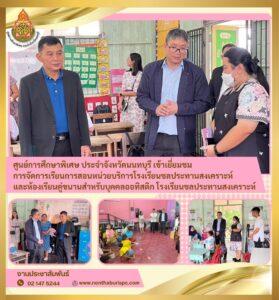 นายณัฐกฤษฎ์ กาญจนาธิวัฒน์ ผู้อำนวยการศูนย์การศึกษาพิเศษ ประจำจังหวัดนนทบุรี พร้อมด้วยนางสาวทิพย์วรรณ ลาดศิลา หัวหน้ากลุ่มบริหารวิชาการ เข้าเยี่ยมชมการจัดการเรียนการสอนและให้กำลังใจคณะครูบุคลากร หน่วยบริการโรงเรียนชลประทานสงเคราะห์ และห้องเรียนคู่ขนานสำหรับบุคคลออทิสติก โรงเรียนชลประทานสงเคราะห์ เพื่อส่งเสริม สนับสนุน และให้คำแนะนำในการจัดการศึกษาสำหรับผู้เรียนที่มีความต้องการจำเป็นพิเศษ โดยได้รับการต้อนรับอย่างดียิ่งจากนายประสิทธิ์ เด่นพัฒนพิทักษ์ ผู้อำนวยการโรงเรียนชลประทานสงเคราะห์