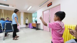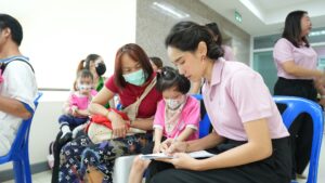 ศูนย์การศึกษาพิเศษ ประจำจังหวัดนนทบุรี นำโดยนายณัฐกฤษฎ์ กาญจนาธิวัฒน์ ผู้อำนวยการ นางสาววารี นาครัตน์ รองผู้อำนวยการ พร้อมทั้งคณะครูและบุคลากร ร่วมจัดกิจกรรมตรวจสุขภาพ ตามโครงการส่งเสริมสุขภาพนักเรียนที่มีความจำเป็นพิเศษ ของศูนย์การศึกษาพิเศษ ประจำจังหวัดนนทบุรี ประจำปี 2567 โดยแพทย์และเจ้าหน้าที่จากโรงพยาบาลบางบัวทอง มาให้บริการประเมินการเจริญเติบโต ประเมินภาวะซีด การประเมินสัญญาณชีพ ตรวจวัดสายตาและการได้ยิน และการตรวจสุขภาพช่องปากและฟัน ณ ห้องประชุมชั้น 3 ศูนย์การศึกษาพิเศษ ประจำจังหวัดนนทบุรี 28 ม.ค. 256829 ม.ค. 2025adminข่าวสาร ศูนย์การศึกษาพิเศษ ประจำจังหวัดนนทบุรี นำโดยนายณัฐกฤษฎ์ กาญจนาธิวัฒน์ ผู้อำนวยการ นางสาววารี นาครัตน์ รองผู้อำนวยการ พร้อมทั้งคณะครูและบุคลากร ร่วมจัดกิจกรรมตรวจสุขภาพ ตามโครงการส่งเสริมสุขภาพนักเรียนที่มีความจำเป็นพิเศษ ของศูนย์การศึกษาพิเศษ ประจำจังหวัดนนทบุรี ประจำปี 2567 โดยแพทย์และเจ้าหน้าที่จากโรงพยาบาลบางบัวทอง มาให้บริการประเมินการเจริญเติบโต ประเมินภาวะซีด การประเมินสัญญาณชีพ ตรวจวัดสายตาและการได้ยิน และการตรวจสุขภาพช่องปากและฟัน ณ ห้องประชุมชั้น 3 ศูนย์การศึกษาพิเศษ ประจำจังหวัดนนทบุรี