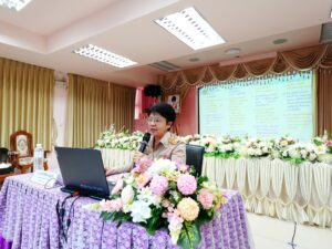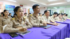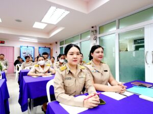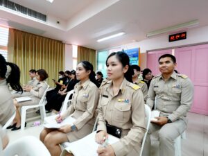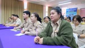ในการนี้ได้รับเกียรติจาก นางสาวนันทิพัฒน์ บุญทวี ผู้เชี่ยวชาญเฉพาะด้านกฎหมาย สำนักงานคณะกรรมการข้าราชการครูและบุคลากรทางการศึกษา (ก.ค.ศ.) เป็นวิทยากร ถ่ายทอดความรู้และประสบการณ์ด้านวินัยข้าราชการครู เพื่อให้ผู้เข้ารับการอบรมมีความรู้ ความเข้าใจในบทบัญญัติของกฎหมาย และสามารถนำไปประยุกต์ใช้ในการปฏิบัติงานได้อย่างถูกต้องและมีประสิทธิภาพ