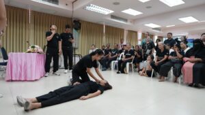 พร้อมสาธิตและฝึกปฏิบัติ การอพยพหนีไฟ อย่างเป็นระบบ รวมถึงการใช้ อุปกรณ์ดับเพลิงเบื้องต้น โดยเปิดโอกาสให้ผู้เข้าร่วมทดลองใช้งานจริง เพื่อเสริมความมั่นใจในการรับมือสถานการณ์ไฟไหม้