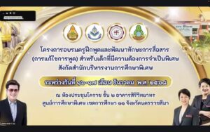 นายณัฐกฤษฎ์ กาญจนาธิวัฒน์ ผู้อำนวยการศูนย์การศึกษาพิเศษ ประจำจังหวัดนนทบุรี มอบหมายให้ นางสาวมินตรา ผูกพันธ์ เข้าร่วมอบรมโครงการอบรมครูฝึกพูดและพัฒนาทักษะการสื่อสาร (แก้ไขการพูด) สำหรับเด็กที่มีความต้องการจำเป็นพิเศษ สังกัดสำนักบริหารงานการศึกษาพิเศษ ระหว่างวันที่ 16-17 ธันวาคม 2568 ผ่านระบบออนไลน์โปรแกรม Zoom cloud meeting 17 ธ.ค. 2568adminข่าวสาร นายณัฐกฤษฎ์ กาญจนาธิวัฒน์ ผู้อำนวยการศูนย์การศึกษาพิเศษ ประจำจังหวัดนนทบุรี มอบหมายให้ นางสาวมินตรา ผูกพันธ์ เข้าร่วมอบรมโครงการอบรมครูฝึกพูดและพัฒนาทักษะการสื่อสาร (แก้ไขการพูด) สำหรับเด็กที่มีความต้องการจำเป็นพิเศษ สังกัดสำนักบริหารงานการศึกษาพิเศษ ระหว่างวันที่ 16-17 ธันวาคม 2568 ผ่านระบบออนไลน์โปรแกรม Zoom cloud meeting