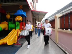 ศูนย์การศึกษาพิเศษ ประจำจังหวัดนนทบุรี จัดกิจกรรมกีฬาภายใน ประจำปีการศึกษา 2568 โดยนายณัฐกฤษฎ์ กาญจนาธิวัฒน์ ผู้อำนวยการ มอบหมายให้นายสุวิจักขณ์ บึงประเสริฐสุข รองผู้อำนวยการ เป็นประธานในพิธีเปิดกิจกรรม 13 ก.พ. 256916 ก.พ. 2026adminข่าวสาร, งานวิจัย-โครงงาน-โครงการ ศูนย์การศึกษาพิเศษ ประจำจังหวัดนนทบุรี จัดกิจกรรมกีฬาภายใน ประจำปีการศึกษา 2568 โดยนายณัฐกฤษฎ์ กาญจนาธิวัฒน์ ผู้อำนวยการ มอบหมายให้นายสุวิจักขณ์ บึงประเสริฐสุข รองผู้อำนวยการ เป็นประธานในพิธีเปิดกิจกรรม การจัดกิจกรรมครั้งนี้มีวัตถุประสงค์เพื่อส่งเสริมให้นักเรียนได้ออกกำลังกายอย่างเหมาะสมกับศักยภาพของแต่ละบุคคล เสริมสร้างสุขภาพ พลานามัยที่แข็งแรง และพัฒนาทักษะด้านร่างกาย อารมณ์ และสังคม ควบคู่กับการปลูกฝังคุณลักษณะอันพึงประสงค์ ได้แก่ ความมีวินัย ความสามัคคี การรู้แพ้ รู้ชนะ รู้อภัย ตลอดจนสร้างความสัมพันธ์อันดีระหว่างนักเรียน คณะครู และผู้ปกครอง ภายในงานจัดให้มีการแข่งขันกีฬา 3 ประเภท ได้แก่ ปาเป้าพื้น เตะลูกบอลผ่านกรวย และวิ่งย้ายบอล ซึ่งเป็นกิจกรรมที่ออกแบบให้สอดคล้องกับความสามารถของผู้เรียน นอกจากนี้ยังมีการประกวดขบวนพาเหรดและกองเชียร์ เพื่อส่งเสริมความคิดสร้างสรรค์และการทำงานเป็นทีม รวมถึงกิจกรรมการแข่งขันเชื่อมความสัมพันธ์ระหว่างผู้ปกครองและคณะครู สร้างบรรยากาศแห่งความร่วมมือ ความอบอุ่น และความภาคภูมิใจร่วมกันของทุกฝ่ายที่เกี่ยวข้อง กิจกรรมดังกล่าวสะท้อนถึงความมุ่งมั่นของศูนย์การศึกษาพิเศษ ประจำจังหวัดนนทบุรี ในการพัฒนาผู้เรียนอย่างรอบด้าน และเสริมสร้างเครือข่ายความร่วมมือระหว่างสถานศึกษา ครอบครัว และชุมชนอย่างยั่งยืน รับชมคลิป Tiktokได้ที่
