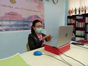 ดร.วิชุดา โชคภูเขียว ผู้อำนวยการศูนย์การศึกษาพิเศษ ประจำจังหวัดนนทบุรี นางสาวพรรณธิภา จันประตูมอญ และนางสาวฐิติมา บุญพึ่ง รองผู้อำนวยการฯ ร่วมการวิพากษ์ผลงานวิชาการ โครงการสัมมนาวิชาการและนวัตกรรมการเรียนรู้ทางการศึกษาพิเศษ ครั้งที่ ๓ ประจำปีการศึกษา ๒๕๖๔
