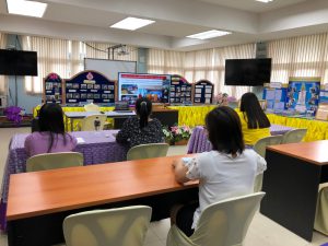 ดร.วิชุดา โชคภูเขียว ผู้อำนวยการศูนย์การศึกษาพิเศษ ประจำจังหวัดนนทบุรี นางสาวพรรณธิภา จันประตูมอญ รองผู้อำนวยการฯ พร้อมด้วยหัวหน้ากลุ่มงานทั้ง 4 กลุ่ม ร่วมประชุมผ่านระบบออนไลน์ด้วยโปรแกรม ZOOM เรื่องการตรวจสอบแผนเครือข่ายนวัตกรรมคุณภาพสถานศึกษา 1 ช่วย 3 สังกัดสำนักบริหารงานการศึกษาพิเศษ ณ ห้องประชุมชั้น 2 ศูนย์การศึกษาพิเศษ ประจำจังหวัดนนทบุรี