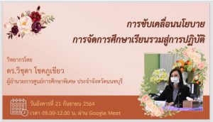 การขับเคลื่อนนโยบายการจัดการศึกษาเรียนรวมสู่การปฏิบัติ วิทยากรโดย ดร.วิชุดา โชคภูเขียว ผู้อำนวยการศึกษาพิเศษ ประจำจังหวัดนนทบุรี 20 ก.ย. 256420 ก.ย. 2021adminข่าวสาร ดาวน์โหลดเอกสาร