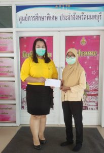 นางวิชุดา โชคภูเขียว ผู้อำนวยการศูนย์การศึกษาพิเศษ ประจำจังหวัดนนทบุรี มอบหมายให้นางสาวพรรณธิภา จันประตูมอญ รองผู้อำนวยการฯ มอบเงินช่วยเหลือ เป็นจำนวนเงิน 1,000 บาท แก่นางสาวจำเนียร บินซาอิส ตำแหน่ง พี่เลี้ยงเด็กพิการ บุคลากรศูนย์ฯ เนื่องจากประสบอุทกภัย 29 ต.ค. 25641 พ.ย. 2021adminข่าวสาร