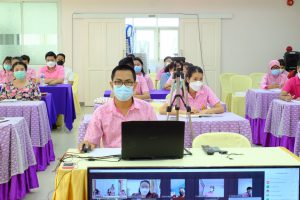 ศูนย์การศึกษาพิเศษ ประจำจังหวัดนนทบุรี จัดประชุมประจำเดือน ครั้งที่ 10/2564 ทางออนไลน์ผ่านโปรแกรม Zoom โดยมี ดร.วิชุดา โชคภูเขียว ผู้อำนวยการฯ เป็นประธานในการประชุมดังกล่าว เพื่อชี้แจงนโยบายและมอบหมายงานแก่คณะครูและบุคลากรทางการศึกษา โดยหัวหน้ากลุ่มบริหารงาน ทั้ง 4 กลุ่มงาน ได้รายงานผลการดำเนินงานของเดือนพฤศจิกายน ที่ผ่านมา พร้อมทั้งมีการแนะนำบุคคลากรใหม่ การรายงานการเข้ารับการอบรมของคณะครู และร่วมอวยพรในวันคล้ายวันเกิดของบุคลากร ณ ห้องประชุมชั้น 3 ศูนย์การศึกษาพิเศษ ประจำจังหวัดนนทบุรี