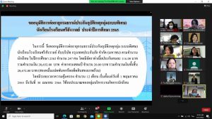 ดร.วิชุดา โชคภูเขียว ผู้อำนวยการศูนย์การศึกษาพิเศษ ประจำจังหวัดนนทบุรี มอบหมายให้ นางสาวพรรณธิภา จันประตูมอญ รองผู้อำนวยการ เข้าร่วมประชุมคณะกรรมการบริหารโรงเรียนศรีสังวาลย์ ครั้งที่ 2 ประจำปี 2565 ผ่านระบบ Application Zoom โดยมีนางณินทิรา โสภณพนิช ประธานคณะกรรมการบริหารโรงเรียนศรีสังวาลย์ เป็นประธานในการประชุมดังกล่าว