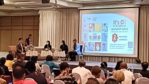 นางภัทริยาวรรณ พันธุ์น้อย ผู้อำนวยการสำนักบริหารงานการศึกษาพิเศษ มอบหมายให้ ดร.วิชุดา โชคภูเขียว ผู้อำนวยการศูนย์การศึกษาพิเศษ ประจำจังหวัดนนทบุรี ร่วมเป็นวิทยากร การเสวนาโครงการรณรงค์วันตระหนักรู้ออทิสติกโลก WORLD AUTISM AWAREMESS DAY (WAAD) การศึกษาทางเลือกสำหรับคนพิการทางออทิสติกแทน ณ โรงแรมใบหยกสกาย กรุงเทพฯ