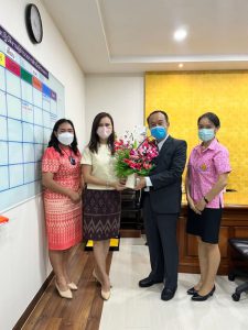 ดร.วิชุดา โชคภูเขียว ผู้อำนวยการศูนย์การศึกษาพิเศษ ประจำจังหวัดนนทบุรี พร้อมด้วยนางสาวฐิติมา บุญพึ่ง รองผู้อำนวยการ และครูอรัญญา พลโยธา เข้าร่วมแสดงความยินดี กับ ดร.ศุภสิน ภูศรีโสม เนื่องในโอกาสได้รับตำแหน่งผู้อำนวยการสำนักอำนวยการฯ สพฐ.