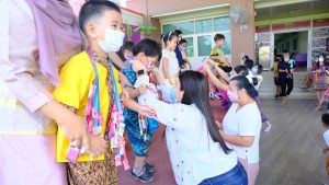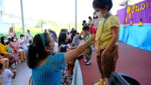 วันที่ 7-8 พฤศจิกายน 2565 ศูนย์การศึกษาพิเศษ ประจำจังหวัดนนทบุรี ดร.วิชุดา โชคภูเขียว ผู้อำนวยการ มอบหมายให้ นางสาวพรรณธิภา จันประตูมอญ รองผู้อำนวยการ เป็นประธานในพิธีเปิดในกิจกรรมวันลอยกระทง ประจำปีการศึกษา 2565 พร้อมด้วยคณะครูและบุคลากร โดยภายในงานมีกิจกรรมการประดิษฐ์กระทงจากวัสดุธรรมชาติ กิจกรรมประกวดกระทง และกิจกรรมการประกวดหนูน้อยนพมาศ เพื่อส่งเสริมให้ผู้เรียนได้เรียนรู้ถึงวัฒนธรรมประเพณีลอยกระทง นอกจากนี้ยังเป็นการส่งเสริมพัฒนาการด้านสังคมให้ผู้เรียนสามารถทำกิจกรรมร่วมกับครู และเพื่อน ณ ลานกิจกรรม ศูนย์การศึกษาพิเศษ ประจำจังหวัดนนทบุรี 8 พ.ย. 2565adminข่าวสาร วันที่ 7-8 พฤศจิกายน 2565 ศูนย์การศึกษาพิเศษ ประจำจังหวัดนนทบุรี ดร.วิชุดา โชคภูเขียว ผู้อำนวยการ มอบหมายให้ นางสาวพรรณธิภา จันประตูมอญ รองผู้อำนวยการ เป็นประธานในพิธีเปิดในกิจกรรมวันลอยกระทง ประจำปีการศึกษา 2565 พร้อมด้วยคณะครูและบุคลากร โดยภายในงานมีกิจกรรมการประดิษฐ์กระทงจากวัสดุธรรมชาติ กิจกรรมประกวดกระทง และกิจกรรมการประกวดหนูน้อยนพมาศ เพื่อส่งเสริมให้ผู้เรียนได้เรียนรู้ถึงวัฒนธรรมประเพณีลอยกระทง นอกจากนี้ยังเป็นการส่งเสริมพัฒนาการด้านสังคมให้ผู้เรียนสามารถทำกิจกรรมร่วมกับครู และเพื่อน ณ ลานกิจกรรม ศูนย์การศึกษาพิเศษ ประจำจังหวัดนนทบุรี
