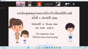 ดร.วิชุดา โชคภูเขียว ผู้อำนวยการศูนย์การศึกษาพิเศษ ประจำจังหวัดนนทบุรี มอบหมายให้นางสาวทิพย์วรรณ ลาดศิลา ร่วมการประชุมคณะกรรมการบริหารโรงเรียนศรีสังวาลย์ ครั้งที่ 3 ผ่านทางระบบออนไลน์ 13 มี.ค. 2566adminข่าวสาร ดร.วิชุดา โชคภูเขียว ผู้อำนวยการศูนย์การศึกษาพิเศษ ประจำจังหวัดนนทบุรี มอบหมายให้นางสาวทิพย์วรรณ ลาดศิลา ร่วมการประชุมคณะกรรมการบริหารโรงเรียนศรีสังวาลย์ ครั้งที่ 3 ผ่านทางระบบออนไลน์