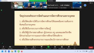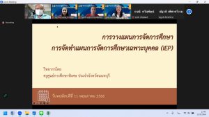 วันที่ 11-12 พฤษภาคม 2566 ศูนย์การศึกษาพิเศษ ประจำจังหวัดนนทบุรี นำโดยดร.วิชุดา โชคภูเขียว ผู้อำนวยการ นางสาวพรรณธิภา จันประตูมอญ รองผู้อำนวยการ พร้อมด้วยคณะครู ร่วมเป็นวิทยากร ในโครงการรู้จักเข้าใจ ห่วงใยเด็กพิเศษ ในหัวข้อเรื่อง การจัดทำ IEP/IP การขอสิ่งอำนวยความสะดวก สื่อ บริการและความช่วยเหลืออื่นใดทางการศึกษา ตามกฎกระทรวง และประเมินผลการจัดการศึกษา มีวัตถุประสงค์ ให้ความรู้และคำแนะนำบุคลากร เพื่อในการจัดการเรียนการสอน และช่วยเหลือเด็กพิการในโรงเรียน สามารถดำเนินการตามรูปแบบการให้การช่วยเหลือทางการเรียนสำหรับโรงเรียนเรียนรวม (Response to Intervention Model : RTI Model) สร้างความเข้มแข็ง ให้โรงเรียนที่จัดเรียนรวมและโรงเรียนต้นแบบการจัดการเรียนรวมที่เป็นศูนย์บริการทางการศึกษาพิเศษ(Student Support Service : SSS) และการนิเทศ ติดตาม ให้คำแนะนำ (Coaching) ผ่านระบบออนไลน์ 12 พ.ค. 256614 พ.ค. 2023adminข่าวสาร วันที่ 11-12 พฤษภาคม 2566 ศูนย์การศึกษาพิเศษ ประจำจังหวัดนนทบุรี นำโดยดร.วิชุดา โชคภูเขียว ผู้อำนวยการ นางสาวพรรณธิภา จันประตูมอญ รองผู้อำนวยการ พร้อมด้วยคณะครู ร่วมเป็นวิทยากร ในโครงการรู้จักเข้าใจ ห่วงใยเด็กพิเศษ ในหัวข้อเรื่อง การจัดทำ IEP/IP การขอสิ่งอำนวยความสะดวก สื่อ บริการและความช่วยเหลืออื่นใดทางการศึกษา ตามกฎกระทรวง และประเมินผลการจัดการศึกษา มีวัตถุประสงค์ ให้ความรู้และคำแนะนำบุคลากร เพื่อในการจัดการเรียนการสอน และช่วยเหลือเด็กพิการในโรงเรียน สามารถดำเนินการตามรูปแบบการให้การช่วยเหลือทางการเรียนสำหรับโรงเรียนเรียนรวม (Response to Intervention Model : RTI Model) สร้างความเข้มแข็ง ให้โรงเรียนที่จัดเรียนรวมและโรงเรียนต้นแบบการจัดการเรียนรวมที่เป็นศูนย์บริการทางการศึกษาพิเศษ(Student Support Service : SSS) และการนิเทศ ติดตาม ให้คำแนะนำ (Coaching) ผ่านระบบออนไลน์