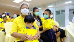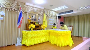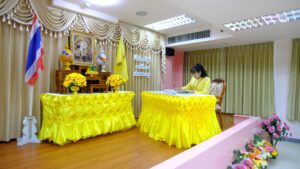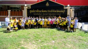 ศูนย์การศึกษาพิเศษ ประจำจังหวัดนนทบุรี นำโดยดร.วิชุดา โชคภูเขียว ผู้อำนวยการ พร้อมด้วยนางพรรษชล บุญคง ประธานคณะกรรมการสถานศึกษา ศูนย์การศึกษาพิเศษ ประจำจังหวัดนนทบุรี นางสาวพรรณธิภา จันประตูมอญ รองผู้อำนวยการ พร้อมด้วยคณะครูและบุคลากร ร่วมจัดกิจกรรมเนื่องในโอกาสวันคล้ายวันเฉลิมพระชนมพรรษา พระบาทสมเด็จพระปรเมนทรรามาธิบดีศรีสินทรมหาวชิราลงกรณ พระวชิรเกล้าเจ้าอยู่หัว ประจำปีการศึกษา 2566 เพื่อส่งเสริมให้ผู้เรียนมีส่วนร่วมในการทำกิจกรรมวันสำคัญของชาติ ร่วมแสดงความจงรักภักดี และสำนึกในพระมหากรุณาธิคุณ ที่ได้ทรงปฏิบัติพระราชกรณียกิจนานัปการ โดยผู้บริหาร คณะครู บุคลากร ผู้ปกครองและนักเรียน ร่วมกล่าวคำถวายราชสดุดีเฉลิมพระเกียรติถวายพระพรชัยมงคล พร้อมร่วมลงนามถวายพระพร พิธีมอบเครื่องราชอิสริยาภรณ์และร่วมทำกิจกรรมปลูกต้นไม้เฉลิมพระเกียรติ บริเวณหน้าศูนย์การศึกษาพิเศษ ประจำจังหวัดนนทบุรี 27 ก.ค. 256629 ก.ค. 2023adminข่าวสาร ศูนย์การศึกษาพิเศษ ประจำจังหวัดนนทบุรี นำโดยดร.วิชุดา โชคภูเขียว ผู้อำนวยการ พร้อมด้วยนางพรรษชล บุญคง ประธานคณะกรรมการสถานศึกษา ศูนย์การศึกษาพิเศษ ประจำจังหวัดนนทบุรี นางสาวพรรณธิภา จันประตูมอญ รองผู้อำนวยการ พร้อมด้วยคณะครูและบุคลากร ร่วมจัดกิจกรรมเนื่องในโอกาสวันคล้ายวันเฉลิมพระชนมพรรษา พระบาทสมเด็จพระปรเมนทรรามาธิบดีศรีสินทรมหาวชิราลงกรณ พระวชิรเกล้าเจ้าอยู่หัว ประจำปีการศึกษา 2566 เพื่อส่งเสริมให้ผู้เรียนมีส่วนร่วมในการทำกิจกรรมวันสำคัญของชาติ ร่วมแสดงความจงรักภักดี และสำนึกในพระมหากรุณาธิคุณ ที่ได้ทรงปฏิบัติพระราชกรณียกิจนานัปการ โดยผู้บริหาร คณะครู บุคลากร ผู้ปกครองและนักเรียน ร่วมกล่าวคำถวายราชสดุดีเฉลิมพระเกียรติถวายพระพรชัยมงคล พร้อมร่วมลงนามถวายพระพร พิธีมอบเครื่องราชอิสริยาภรณ์และร่วมทำกิจกรรมปลูกต้นไม้เฉลิมพระเกียรติ บริเวณหน้าศูนย์การศึกษาพิเศษ ประจำจังหวัดนนทบุรี