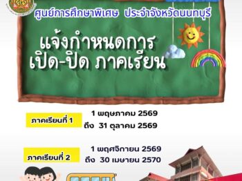 ประกาศ ศูนย์การศึกษาพิเศษ ประจำจังหวัดนนทบุรี